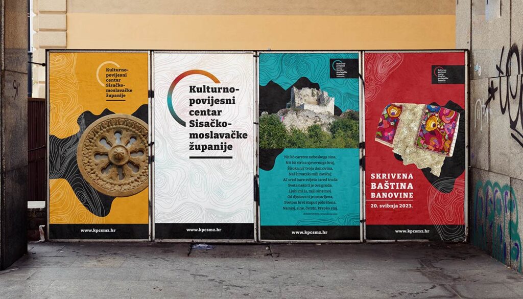 When creating the visual identity, we played with the stylized (simplified) representation of Sisak-Moslavina County and lines (isohypses) that cartographically show different altitudes in the height of individual parts that have been extracted precisely for this area. Through different visuals we use these lines as a means of attracting the eye with their playful forms, but at the same time they do not distract from main communication elements.