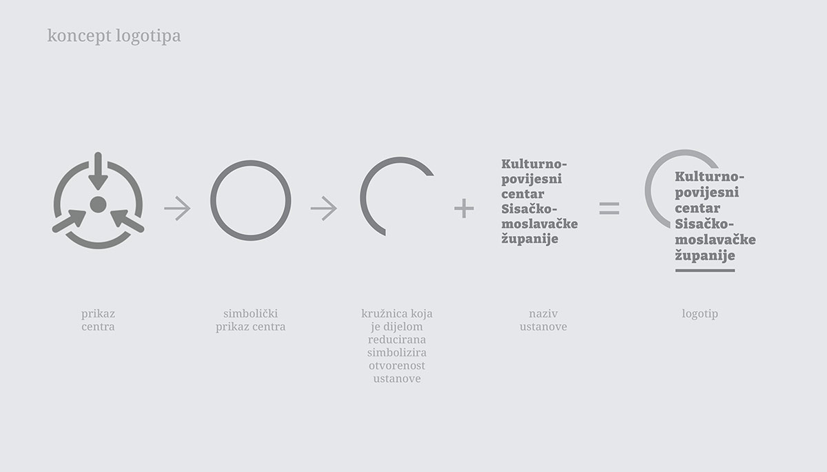 By analyzing the existing cultural institutions in the Sisak-Moslavina County area and by researching the audience, i.e. potential visitors of the Center, we have defined the direction in which we want to go. It was necessary to find a link that will symbolically unite everything that this one institution represents. That's how we have thinking about symbolism in the visual solution of the logo and the entire visual identity, looked at the territorial position of Sisak-Moslavina County in relation to the Republic Croatia and concluded that it is located in the CENTER. On the other side, the Cultural History Center SMŽ, both in name and in its own activities in different areas from culture and history, natural and traditional beauty, to memorial significance of the Homeland War, represents, and through action will represent the CENTER of different events within the county. Therefore, when thinking about the logo of this institution, the symbolism of the CENTER was taken into account.