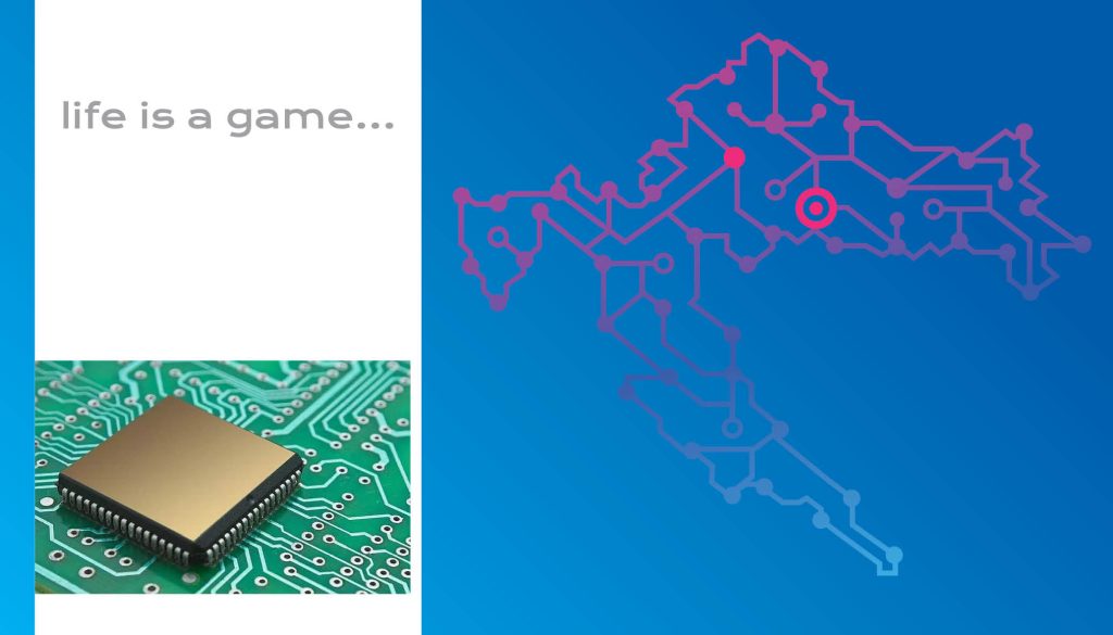 Slogan ovogodišnje konferencije glasi: “ŽIVOT JE IGRA. HRVATSKA JE TVOJE IGRALIŠTE.” Pozicioniranje događanja u Novsku, u centar gaming industrije, dalo nam je inspiraciju da vizualni jezik ove godine stiliziramo poput standardnih vizuala u gaming industriji.